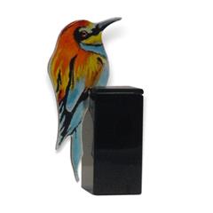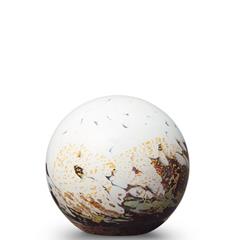 Het glasreliek Rhea kenmerkt zich door zijn puntige bovenkant met als binnenwerk een achttal bruisende slierten van as en eventueel kleur. De basis is zwart, maar andere kleuren zijn ook mogelijk. De afmetingen van Rhea zijn ongeveer 12 x 9,5 cm.
